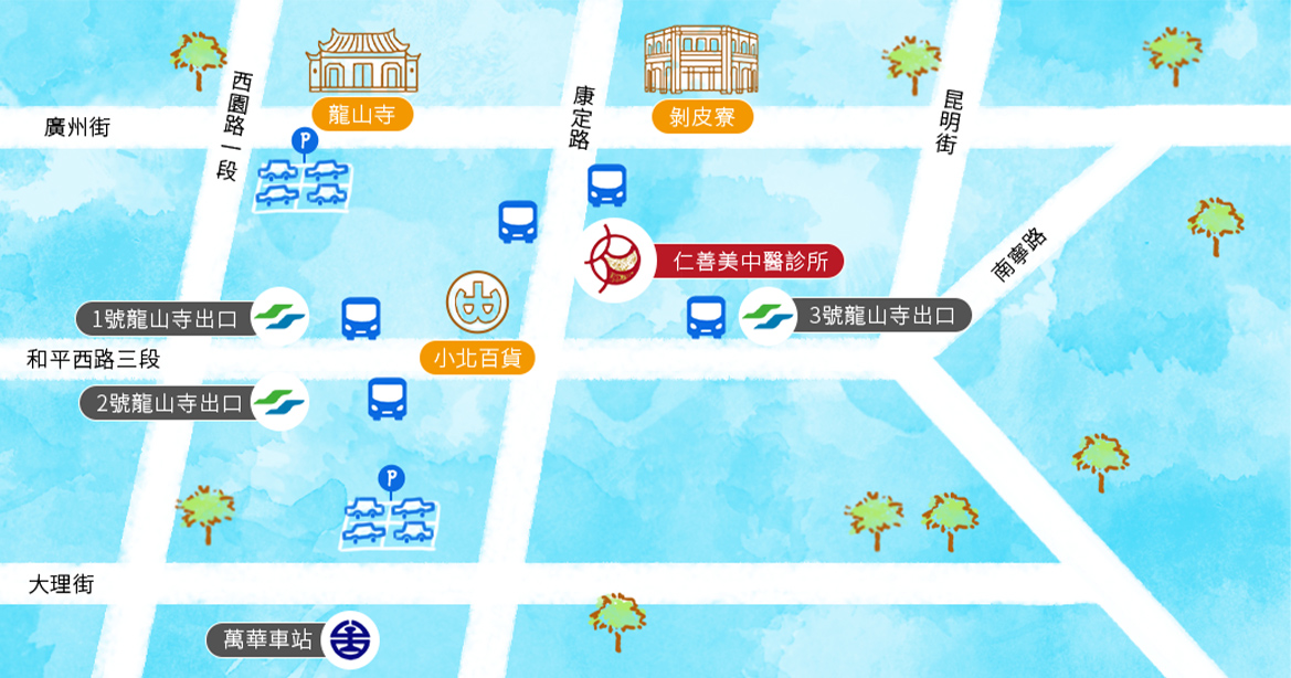 站名 | 捷運龍山寺站38、234、245、265、568、651、656、705、907、985、仁愛幹線、藍28